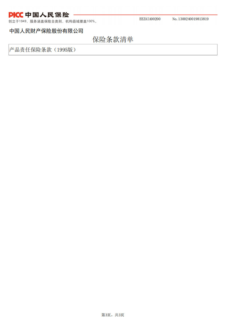 PICC保险单